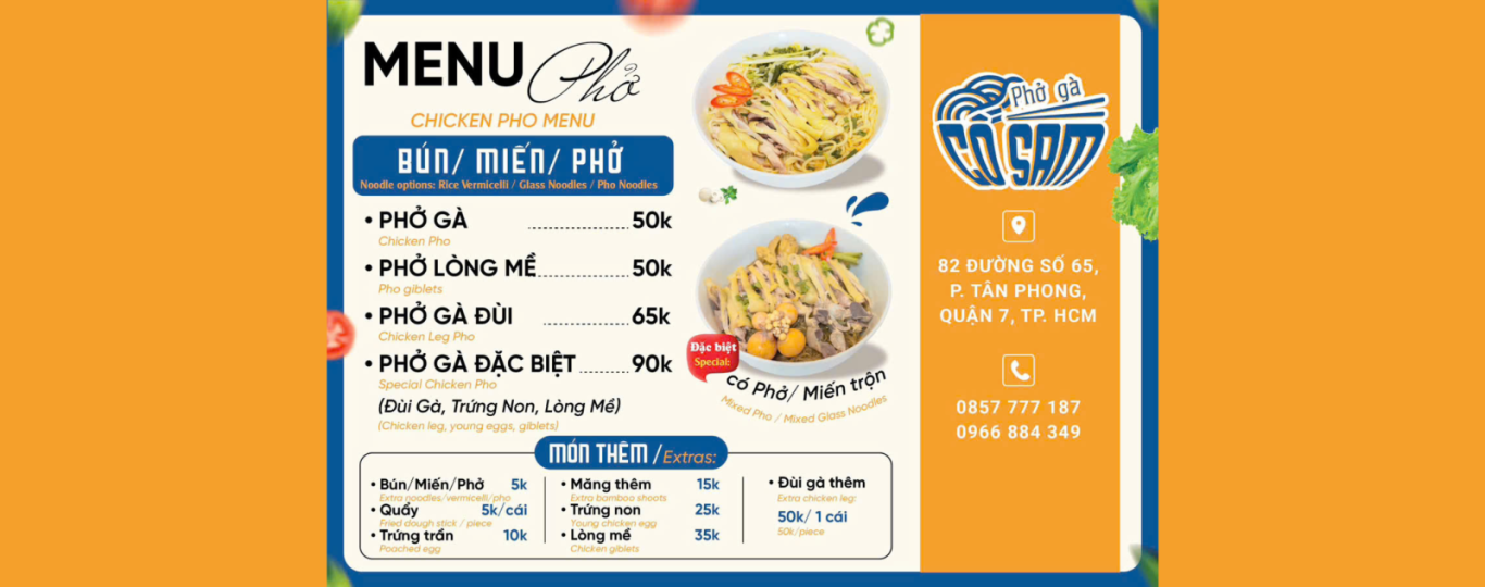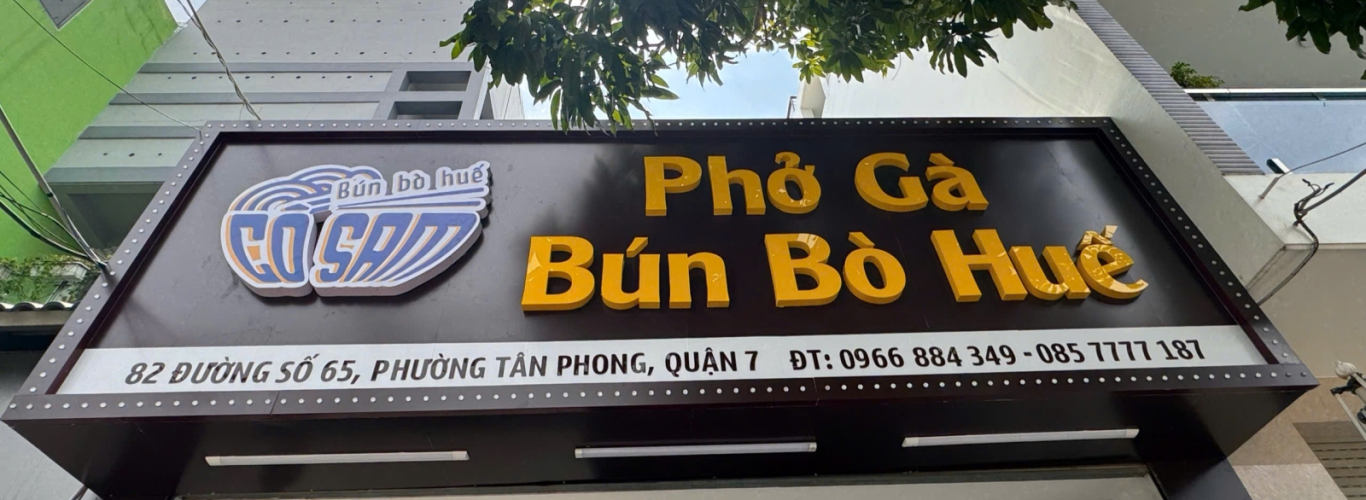 BÚN BÒ HUẾ CÔ SAM là một thương hiệu hiện nay rất nổi tiếng tại Quận 7 chuyên về bún bò Huế, ngoài bún bò ở đây còn có thêm những món đặc trưng của cố đô như bánh huế,… Dù mới có mặt ở thị trường chưa được nhiều năm kinh doanh, nhưng Cô Sam là nơi được nhiều người tin tưởng.